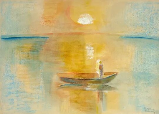 Egry Józsefet, a Balaton festőjét, a húszas évektől kezdve foglalkoztatta a magyar tenger változó atmoszférája. Ezt ő maga fogalmazta meg; „ A fényt mindenki elmosódónak festi. Engem a fény maga izgat. Az atmoszféra, amely architektonikus. Nálam a fény, a pára formát nyer, mint maga a figura. Betölti a teret