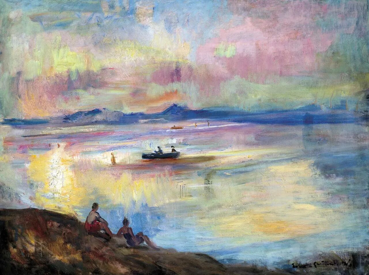 Iványi Grünwald Béla a Nagybányai, majd Kecskeméti művésztelep alapítója volt. Gazdag festői pályájában fontos szerepet játszott a Balatonhoz kapcsolódó képciklus. A húszas években sorra festette a fürdőzőket, a tavon sikló vitorlásokat. Ragyogóan jelenítette meg a víz és változó fények szépségét.