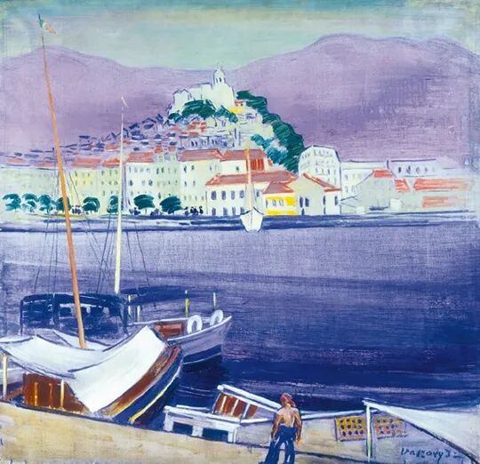 összegző tengeri városképén a tenger, a hegy és az égbolt három horizontális síkra tagolja a festményt. Vaszary gyorsan, lendületesen dolgozott, előrajzolás nélkül biztos kézzel vitte fel a vászonra a keveretlen, friss színeket.