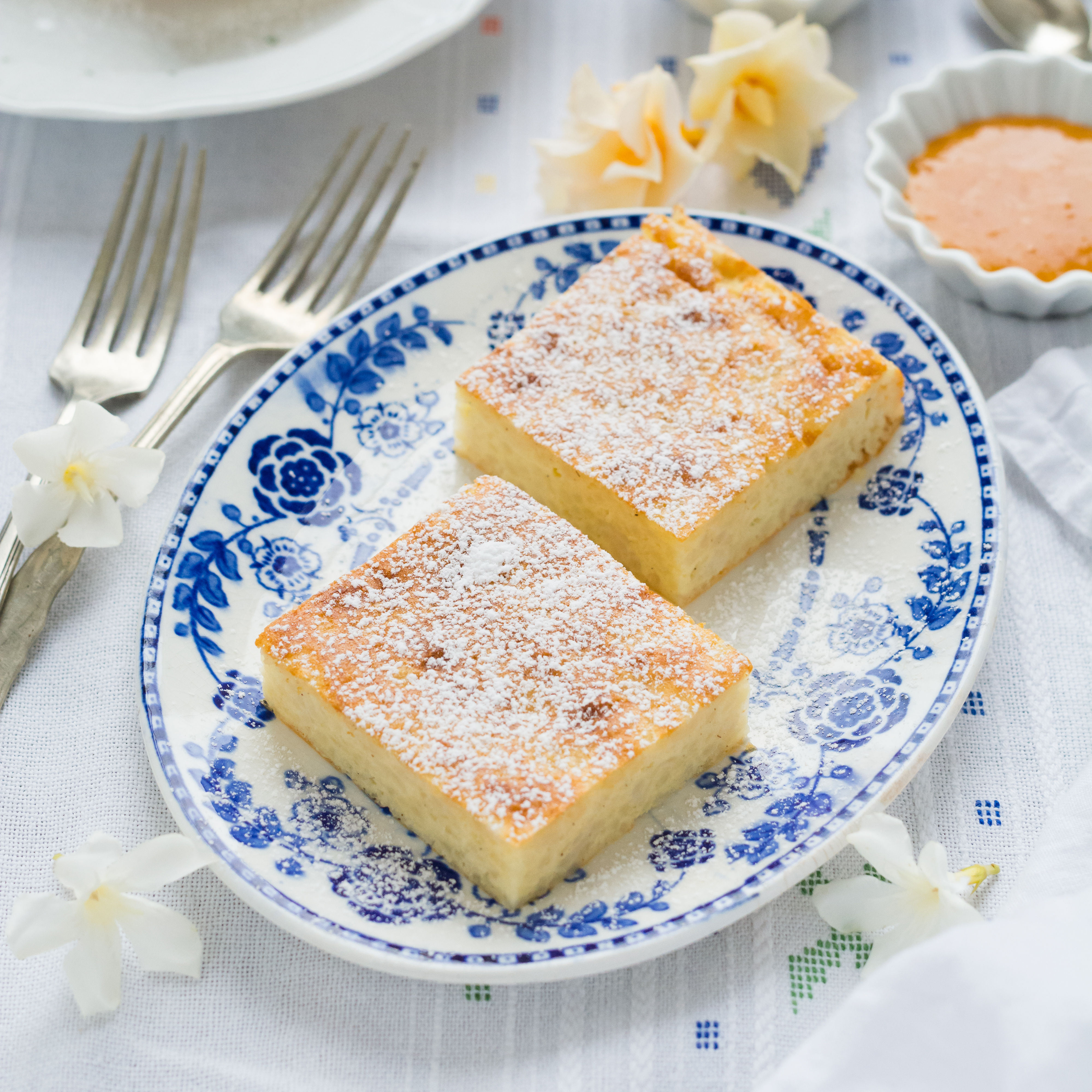 Meanwhile, whisk the egg yolks with the two types of sugars and butter, then stir into the cooled rice. Beat the egg whites into a hard foam and gently roll it into the rice as well. Spread the mass in a baking tray, sprinkled with breadcrumbs, and bake in a preheated 180 degree oven until golden brown. After it has cooled, cut into cubes and serve with apricot or strawberry jam.